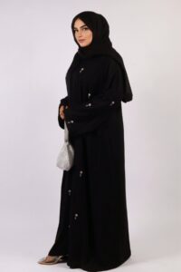 Warda Front Open Luxury Floral Handwork Abaya – Diamond Black