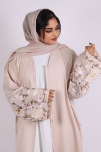 Miraj Crinkled Cotton Jazz Lapel Abaya with Inner – Fawn
