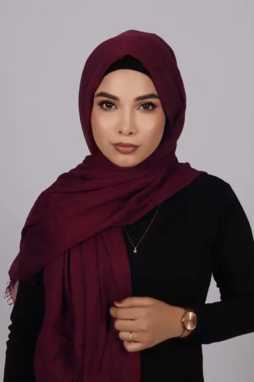 Maroon Crinkled Cotton Hijab