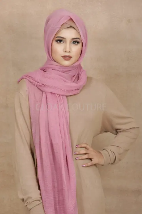 Cherry Pink Crinkled Cotton Hijab