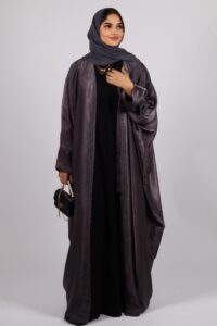 Hoorein Luxury Wedding 3-piece Butterfly Kaftan Abaya Set – Silver Ash