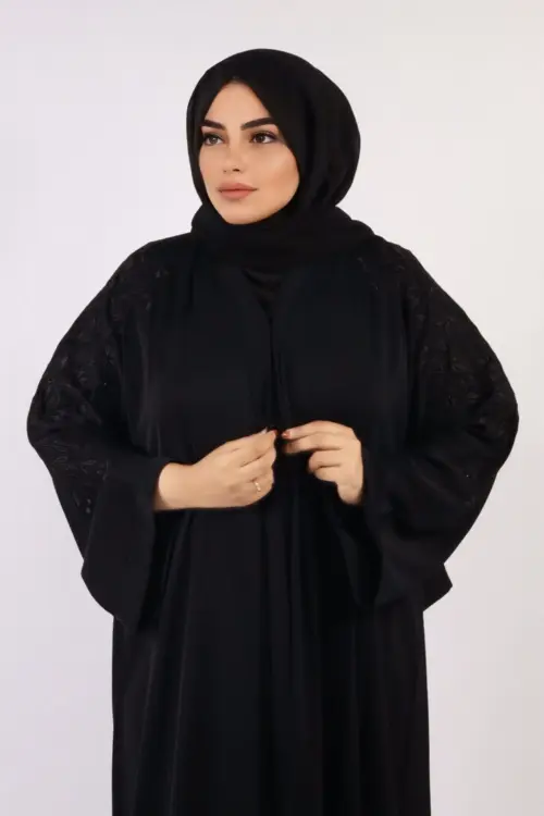 Marhaba Front Open Arabian Embroidery Abaya – Black
