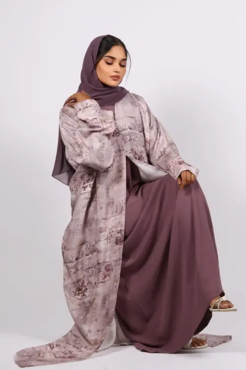 Zephyra Turkish Linen 3-piece Abaya set – Dusty Lilac