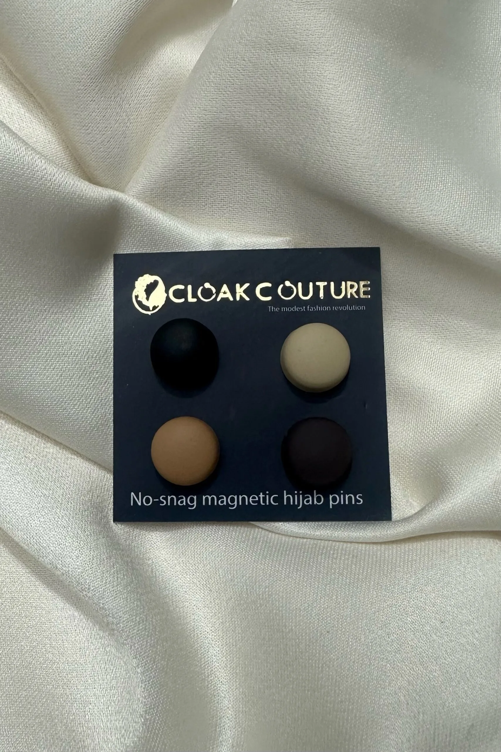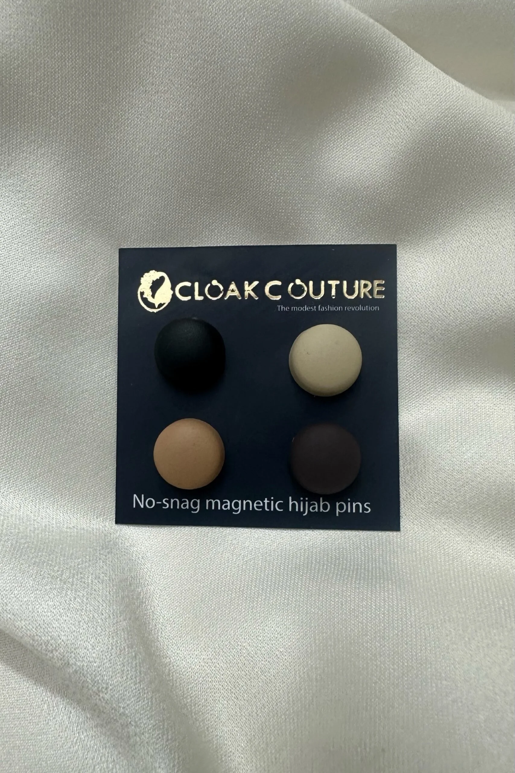Regular pins can destroy your delicate hijab fabrics! Say goodbye to snagging, with these midsized No-snag Magnetic Hijab Pins. Each pin comprises a front and back piece with strong magnets that secures your hijab in place featurin round shape that can elevate your whole look. Shop these set of 4 curated for all those Metallic shade lovers.