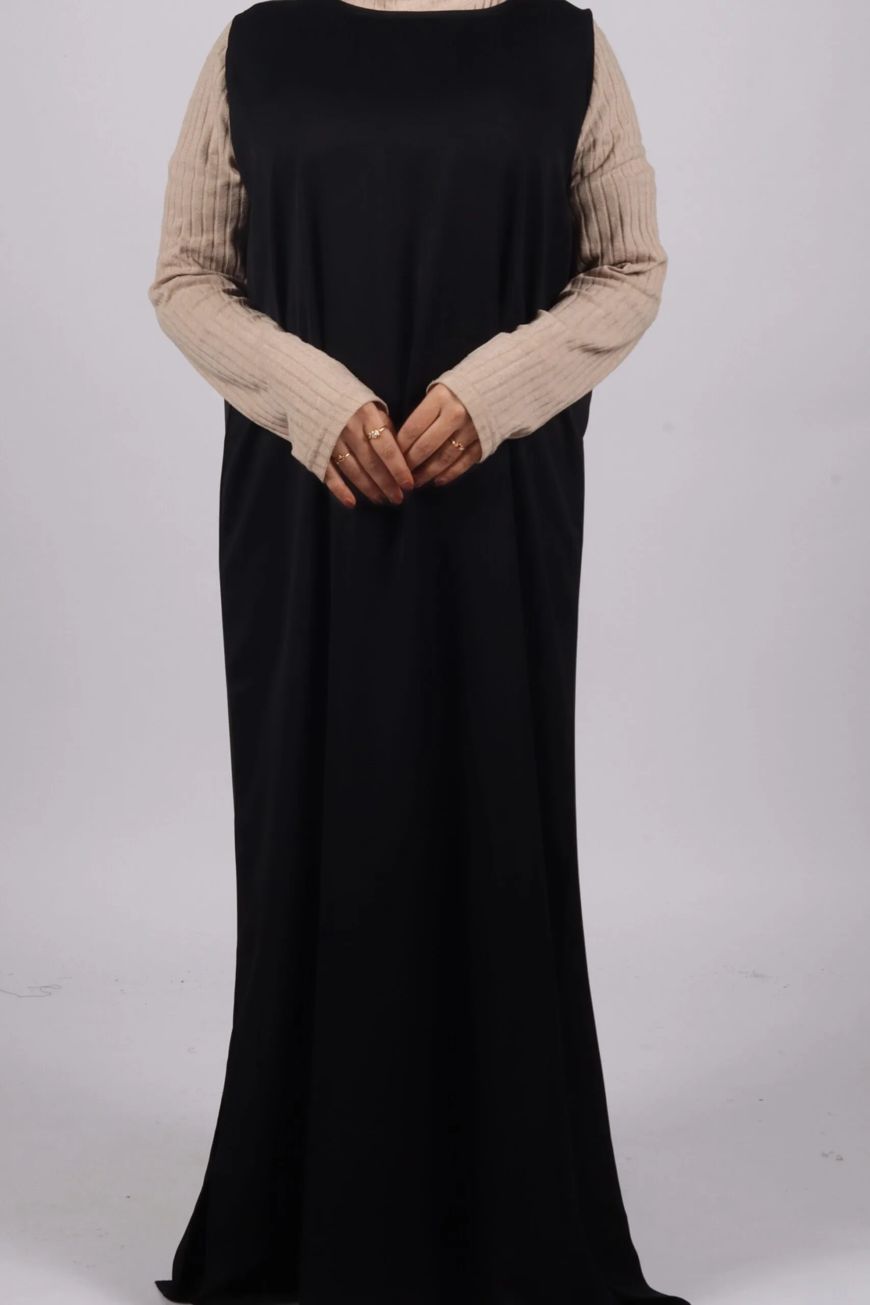 Complete your modest wardrobe with these essential layering dress! Made out of premium nida fabric, the sleeveless slip dress has a modest fit and comes with side slits to provide ease of movement. Perfect for your open abaya styles or any look that requires layering. The fabric allows fluid movement and provides all-day comfort. Comes in 3 essential colors that complement every look and fit