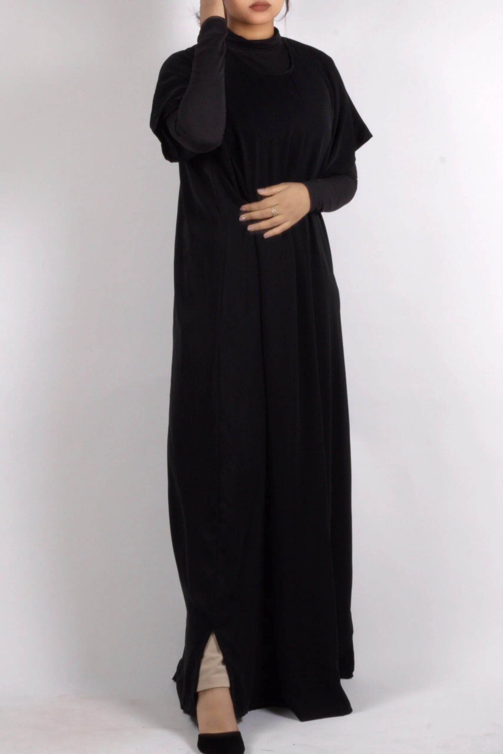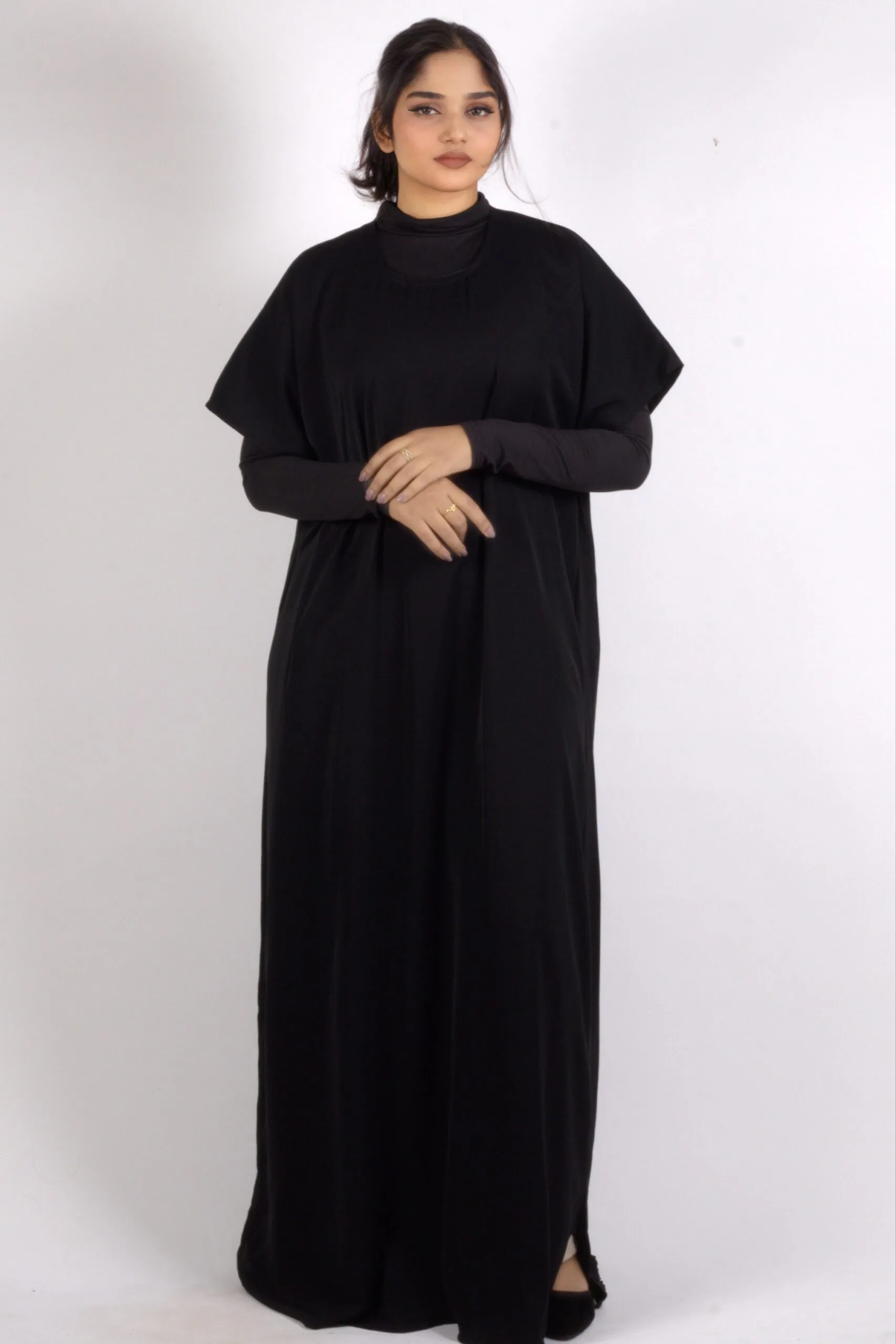 Complete your modest wardrobe with these essential layering dress! Made out of premium Nusrat fabric, the half-sleeve slip dress has a modest fit, back button fastening for ample coverage and easy wear, and comes with side slits to provide ease of movement. Perfect for your open abaya styles or any look that requires layering. The airy fabric allows extreme breathability, fluid movement and has a silky smooth touch providing all-day comfort. Comes in 6 essential colors that complement every look and fit