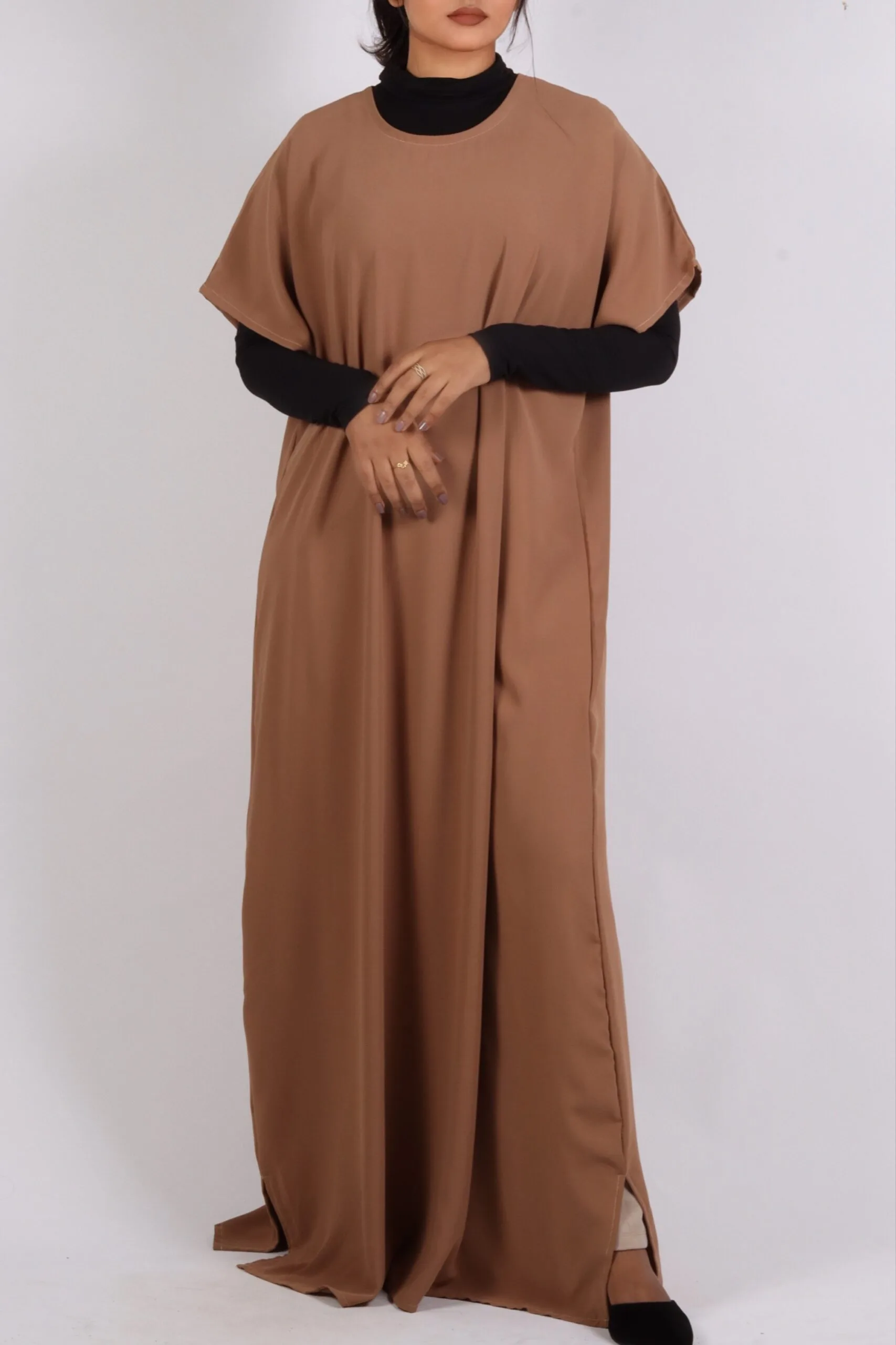 Complete your modest wardrobe with these essential layering dress! Made out of premium Nusrat fabric, the half-sleeve slip dress has a modest fit, back button fastening for ample coverage and easy wear, and comes with side slits to provide ease of movement. Perfect for your open abaya styles or any look that requires layering. The airy fabric allows extreme breathability, fluid movement and has a silky smooth touch providing all-day comfort. Comes in 6 essential colors that complement every look and fit