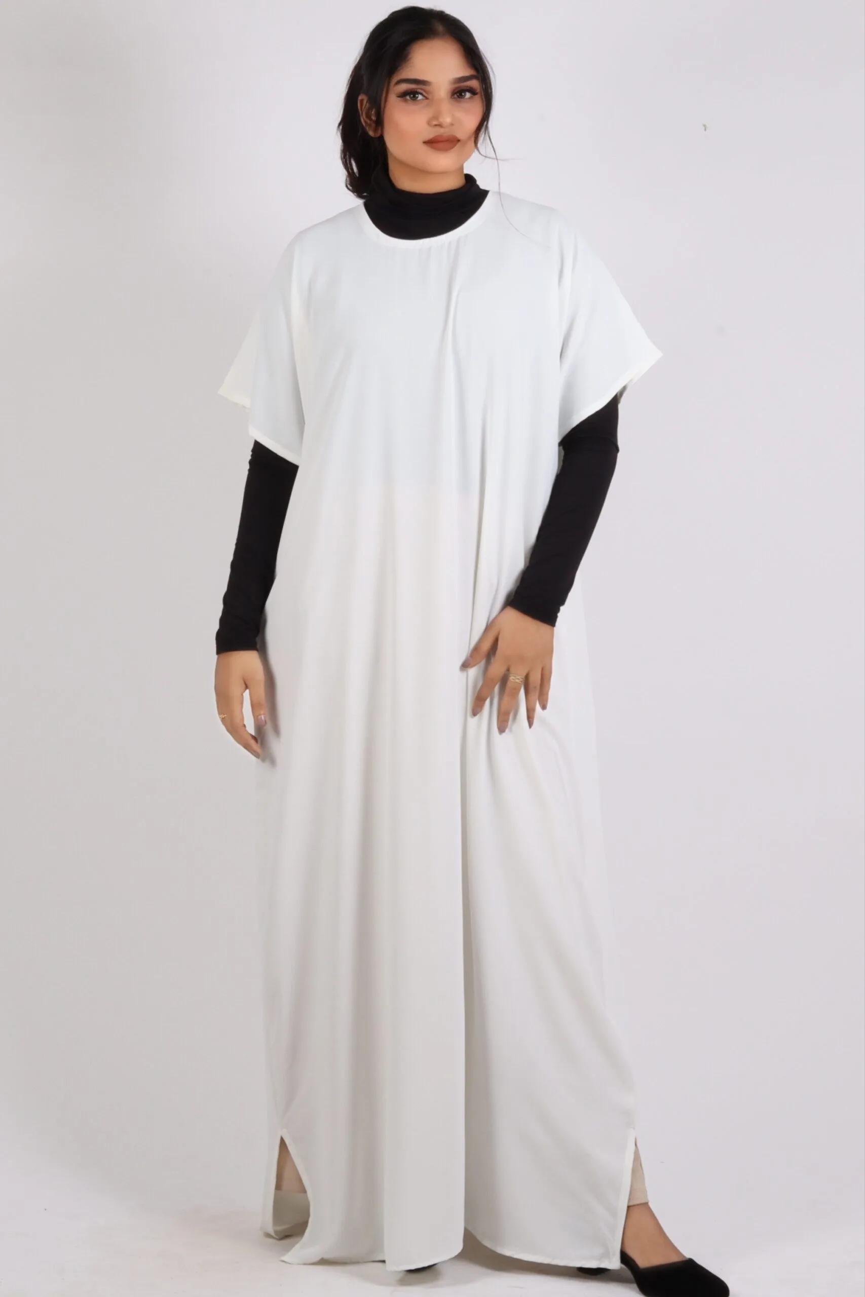 A staple for every hijab-wearer! This inner layering dress/slip is perfect to accompany open abayas to add some flair to your look. The half-sleeve dress is crafted out of premium Nusrat fabric that has a smooth, silky feel, and is so airy that it promises to keep you cool and comfortable. It comes with side slits for ease of movement, and back button fastening for ease of wear. Available in 6 essential colors