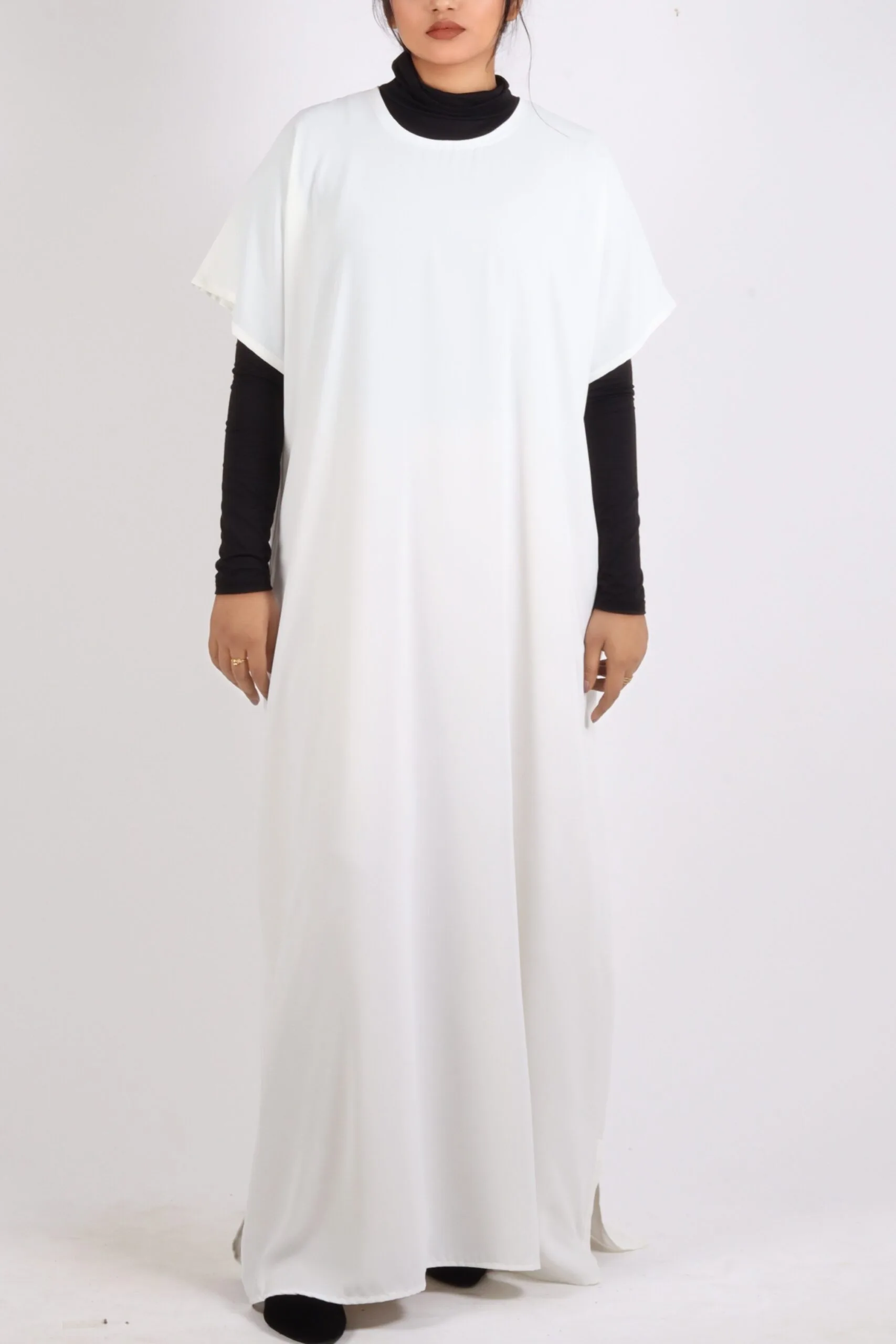 Complete your modest wardrobe with these essential layering dress! Made out of premium Nusrat fabric, the half-sleeve slip dress has a modest fit, back button fastening for ample coverage and easy wear, and comes with side slits to provide ease of movement. Perfect for your open abaya styles or any look that requires layering. The airy fabric allows extreme breathability, fluid movement and has a silky smooth touch providing all-day comfort. Comes in 6 essential colors that complement every look and fit