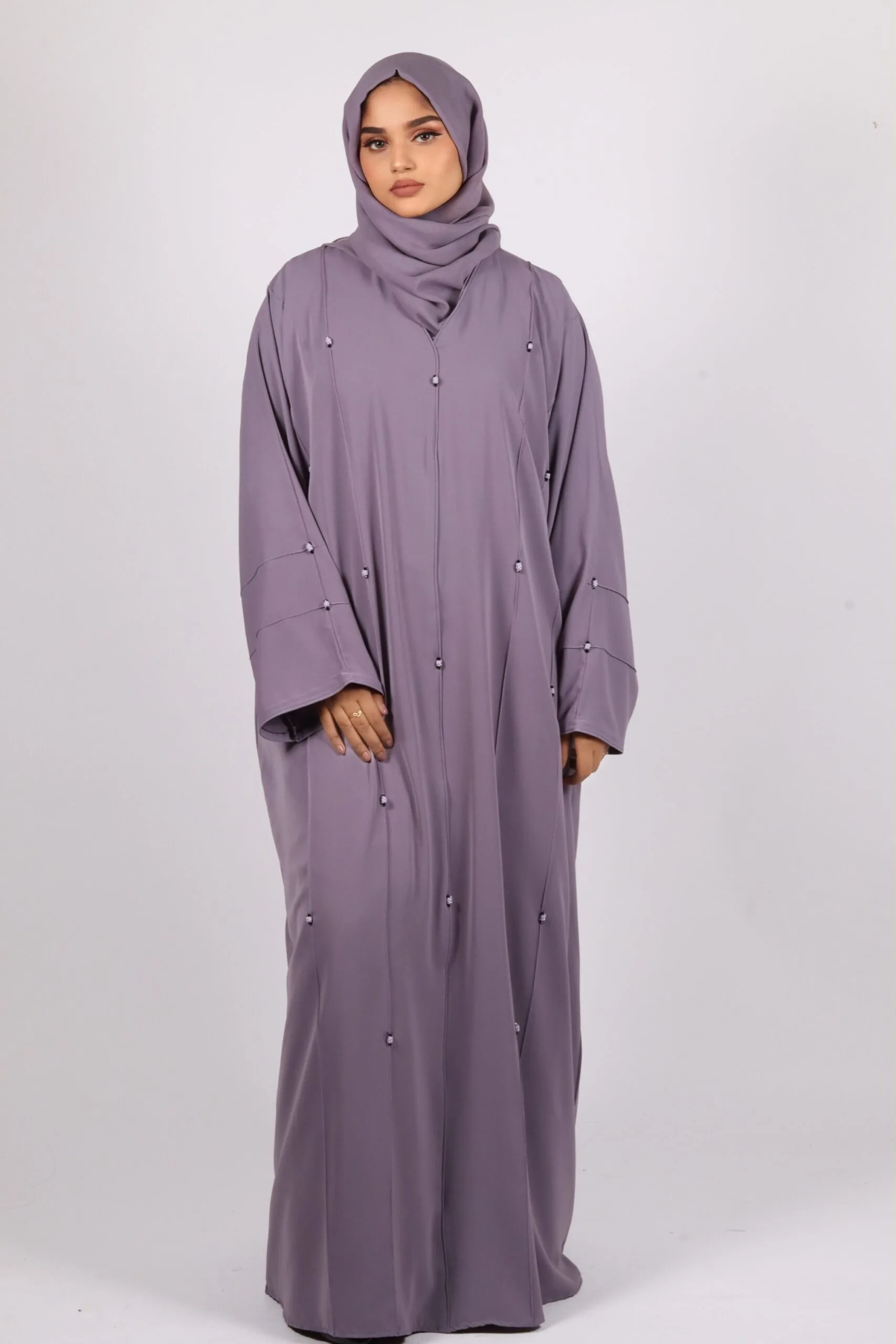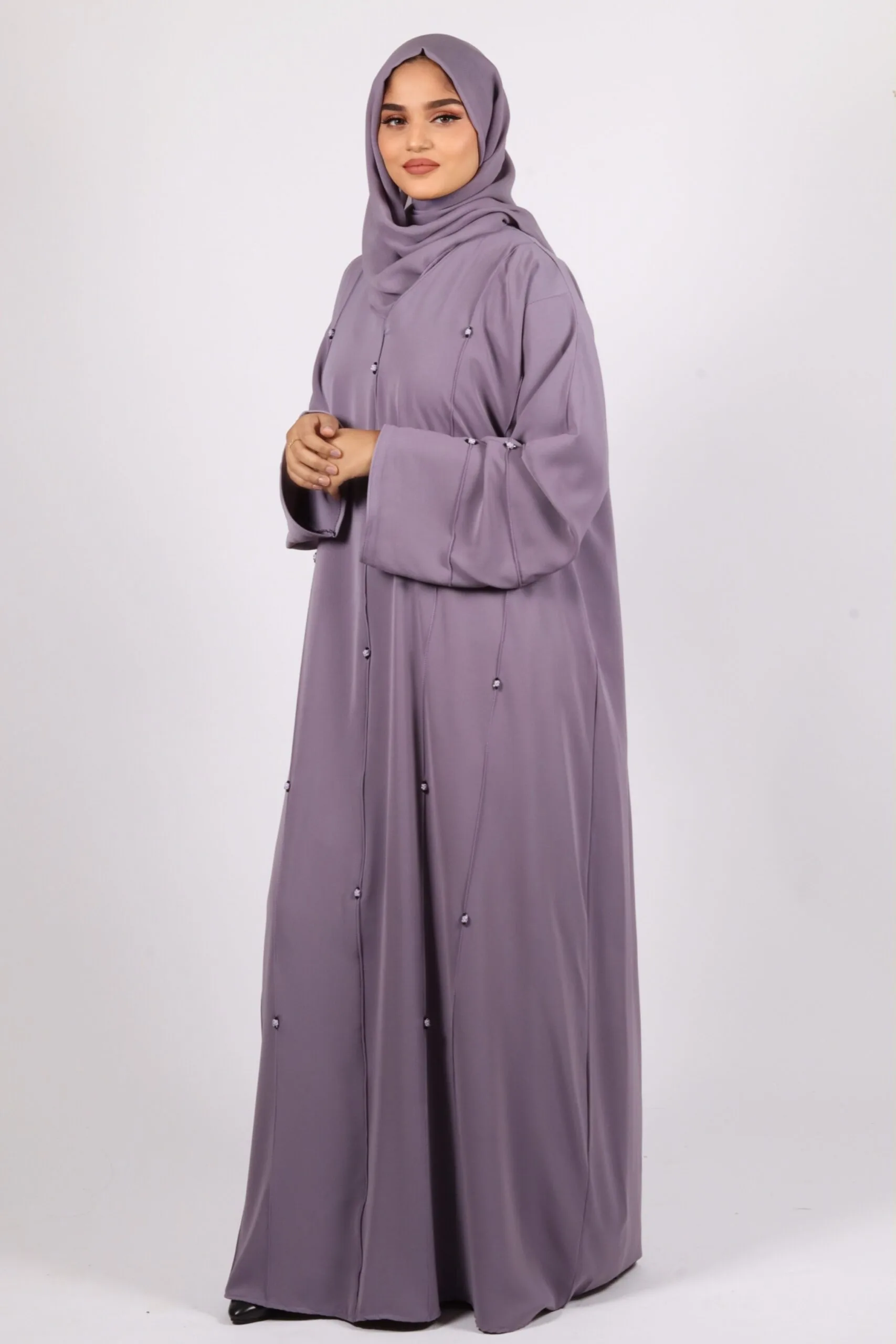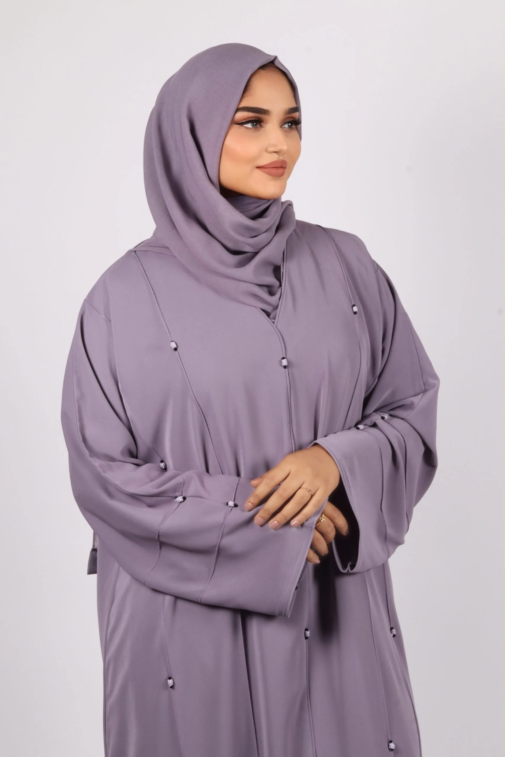 Seher Classic Emirati Abaya with Stonework – Lavender