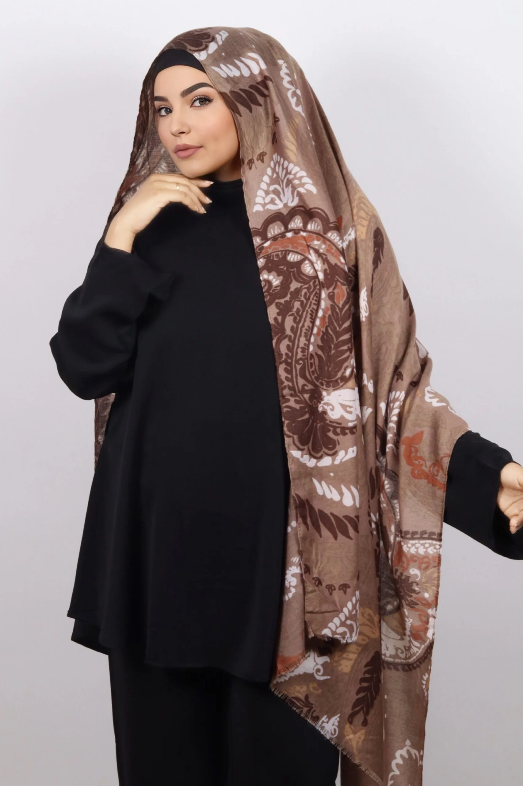 Introducing our newly-launched Kashmir Pashmina-Inspired Printed Hijabs – one of the most trending sensations to have taken over in recent times. The timeless Pashmina prints have made a major comeback, blending traditional artistry with contemporary style, making them the perfect choice for modern-day modest fashion enthusiasts. Our version is crafted from premium viscose fabric, offering an incredibly breathable feel, making them ideal for all-weather wear. The intricate prints, inspired by the timeless elegance of traditional Pashmina designs, reflect the rich cultural heritage of Kashmir while adding a contemporary flair to your wardrobe.
