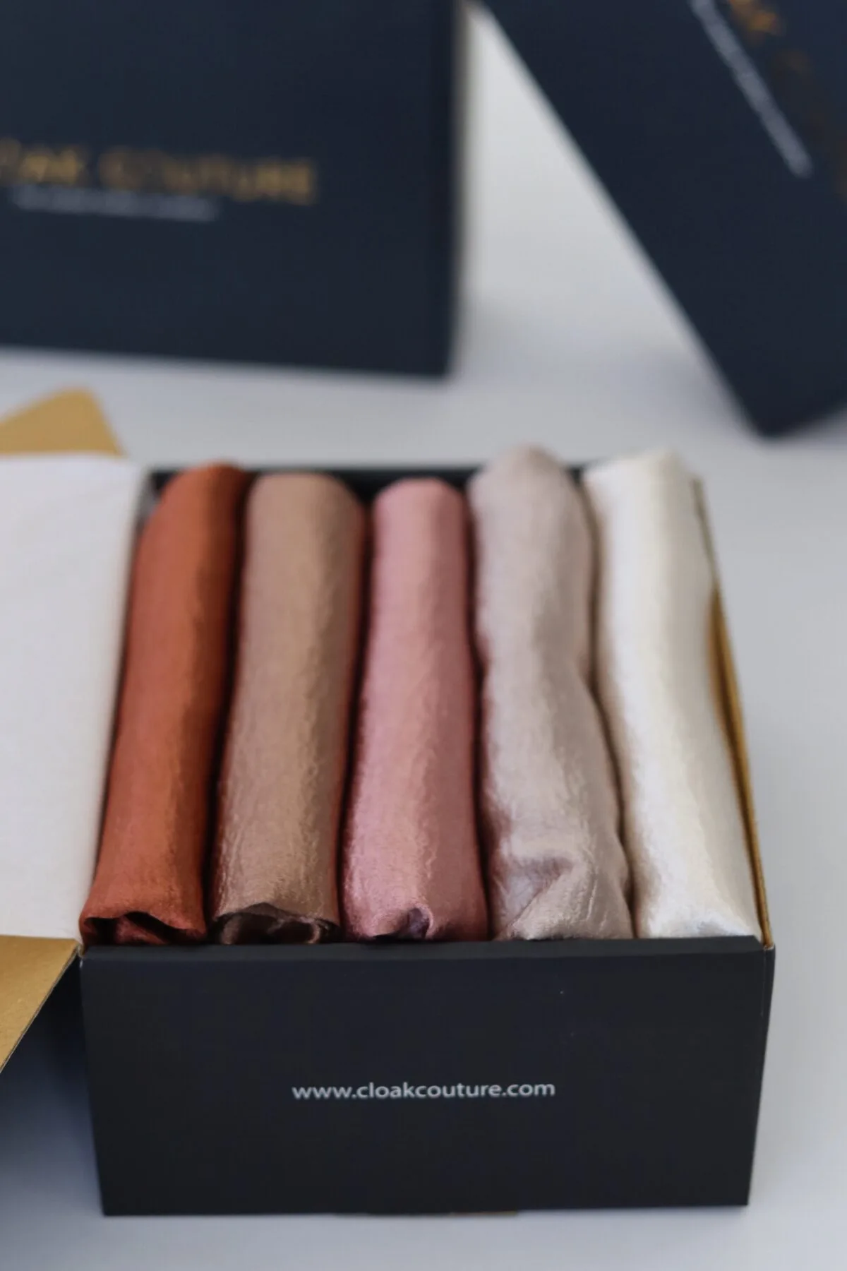 Our Hijab Boxes comprise of handpicked, curated selections that have been bundled together at a special discounted price to save you the hassle of making the right choice. Carefully put together to give you the best of everything, these boxes are perfect for someone who needs the best in everything or for new hijabis who’re often confused at making the right choice. Comes in a premium corrugated box, making it perfect for gifting to your loved ones.