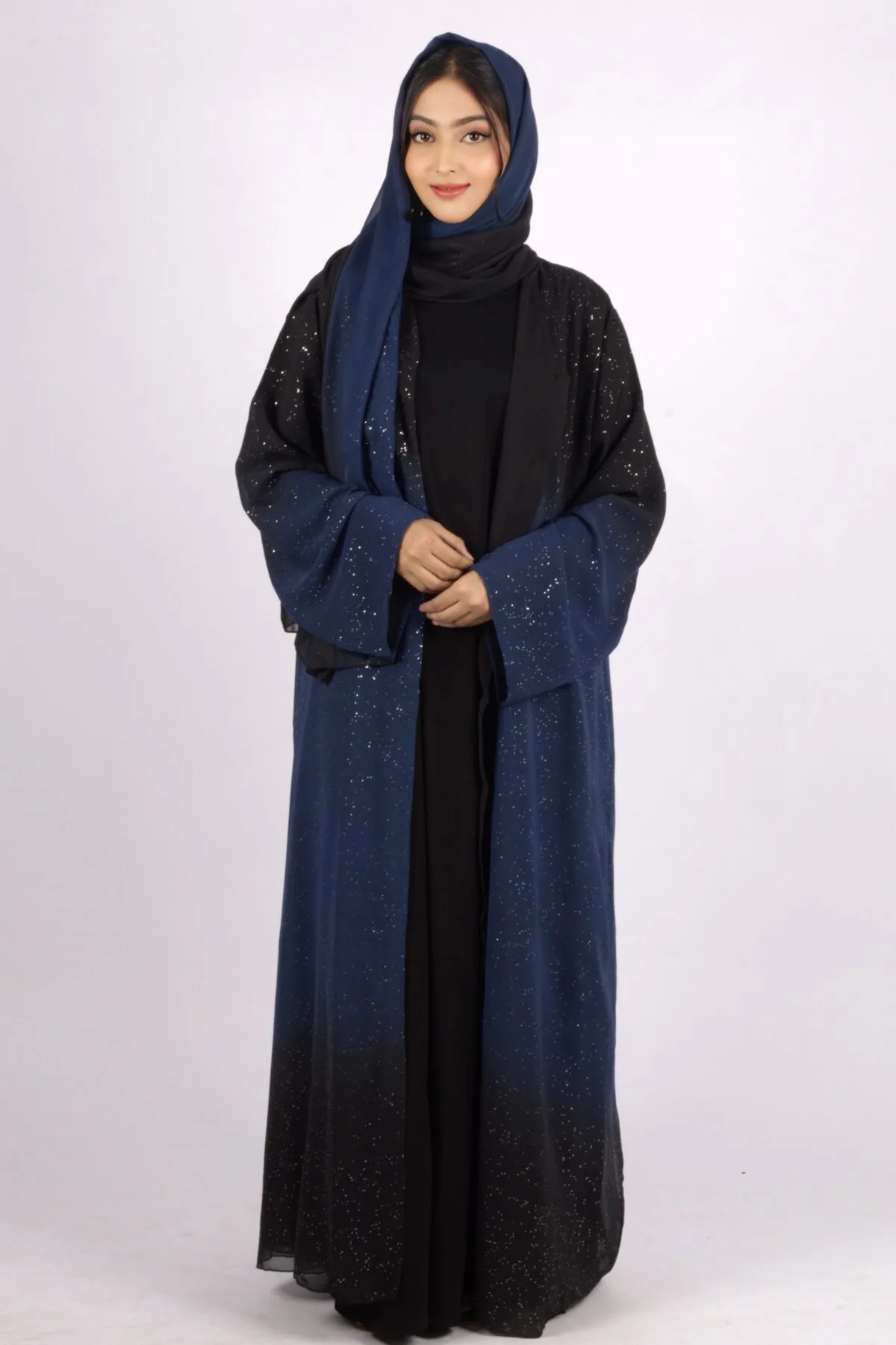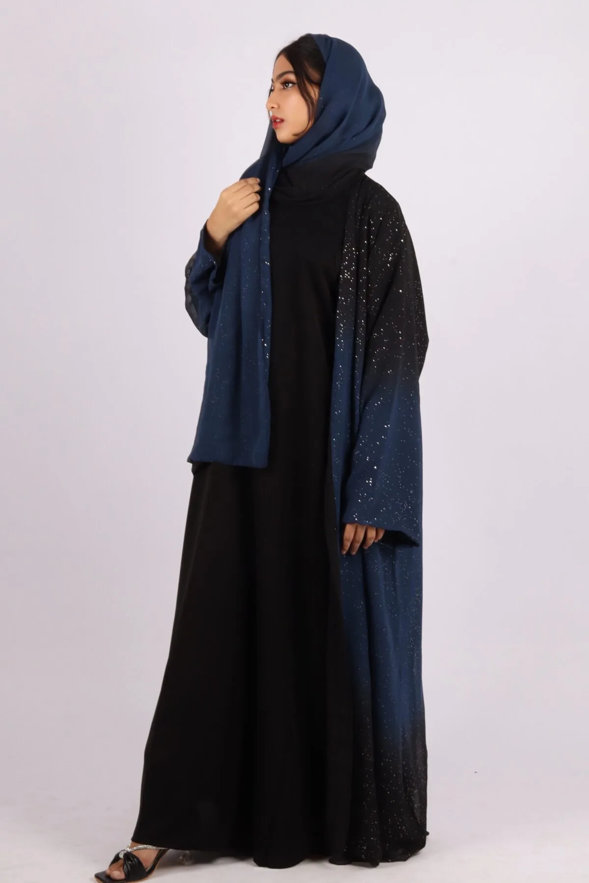 Mehtab Sparkling Glitter Dual Tone Abaya with Front Open – Galactic Blue
