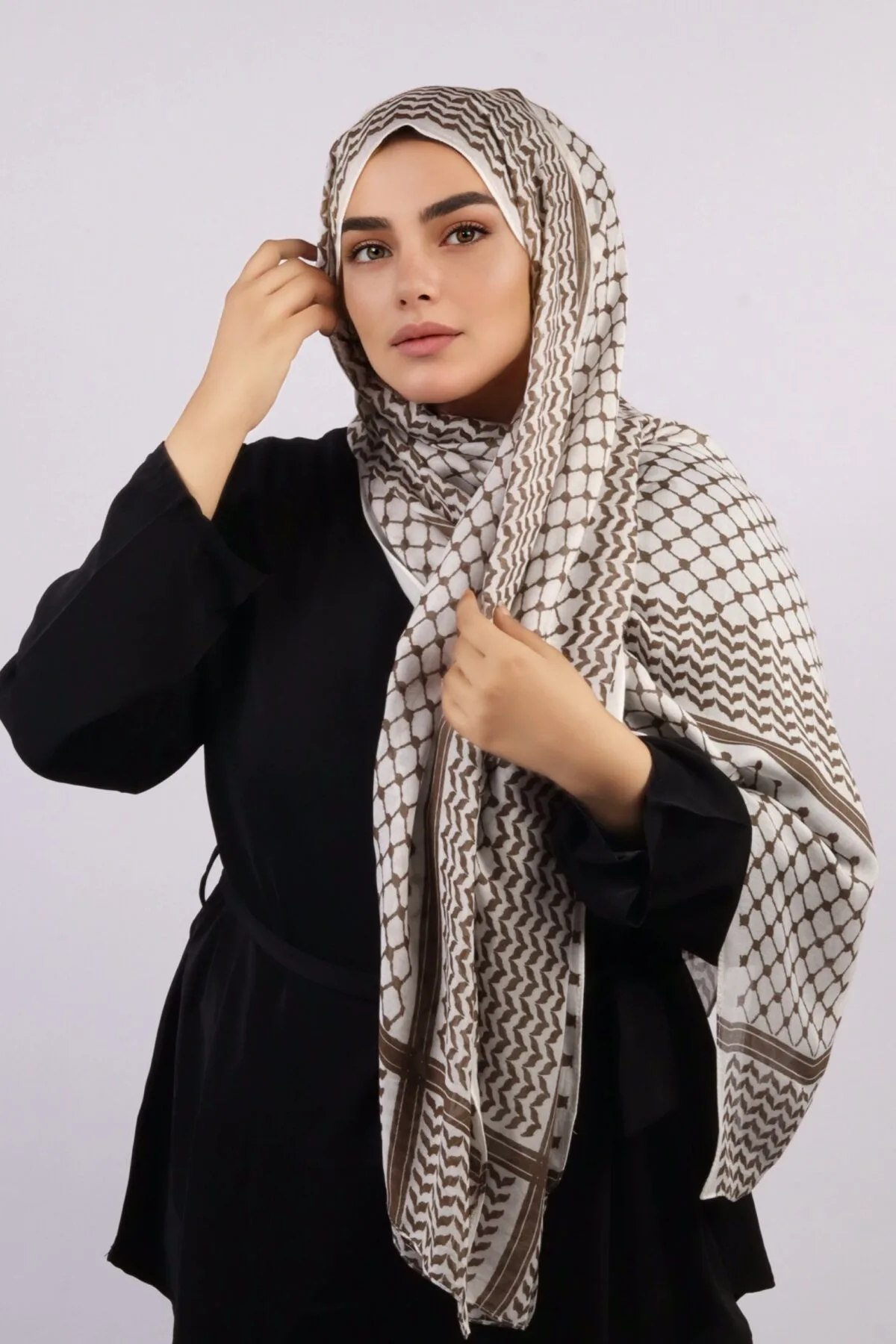 Our Modal Keffiyeh Hijab is a tribute to heritage, identity, and resilience. Crafted from premium modal twill fabric, this hijab is lightweight, breathable, and incredibly soft, offering all-day comfort without compromising on style or meaning.