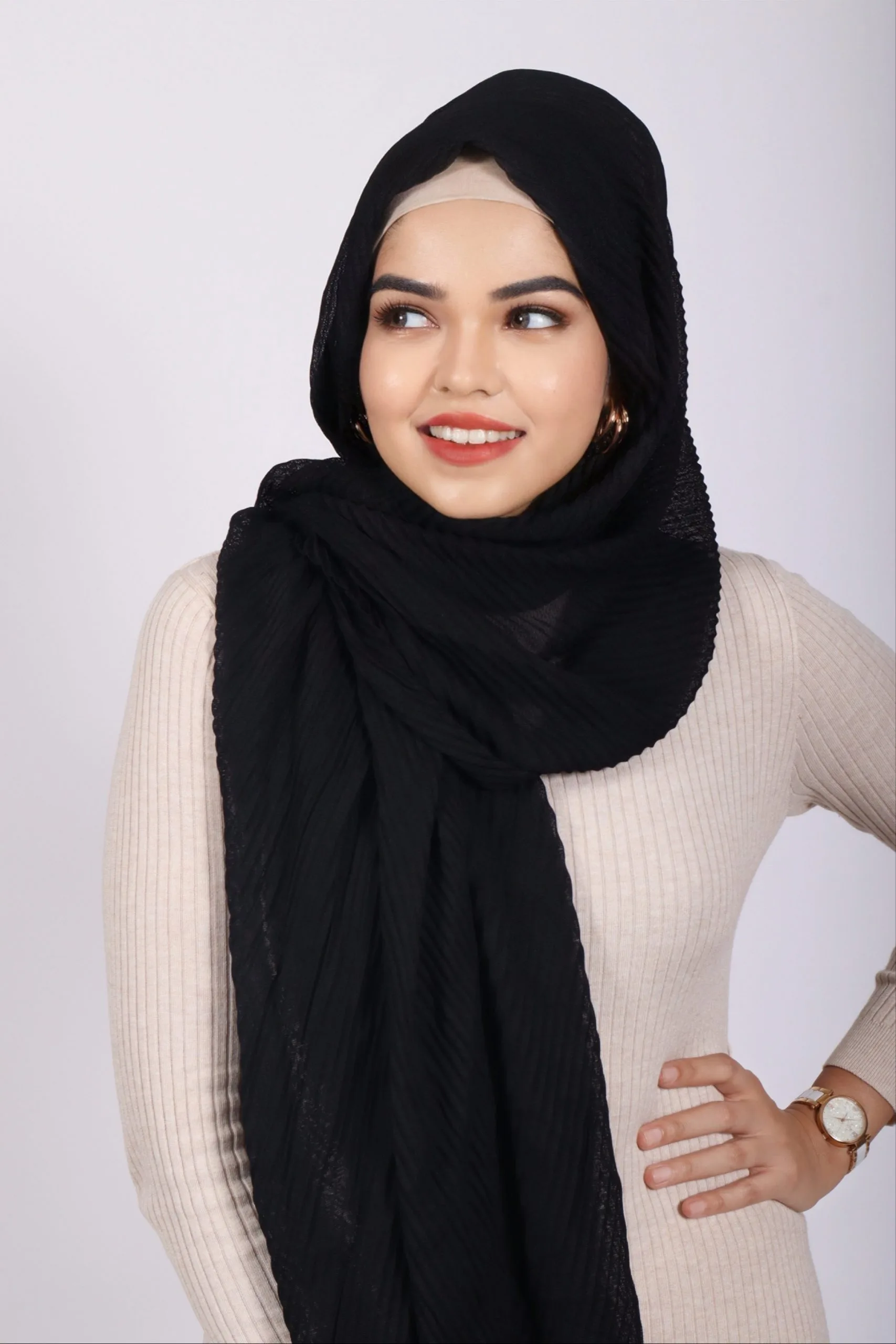 Black Cotton Pleated Hijab