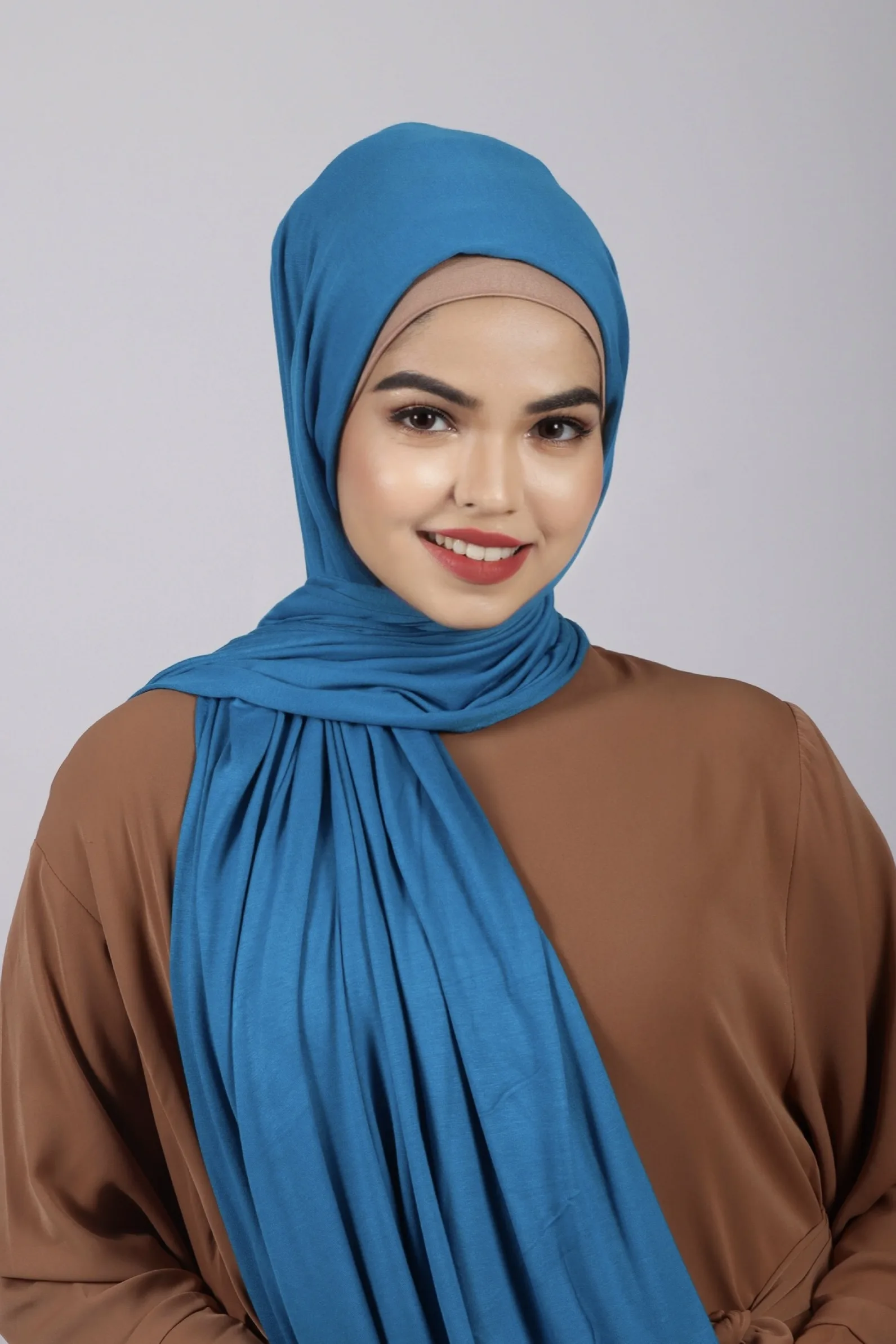 Our Jersey hijab collection features an exquisite premium cotton jersey fabric that is opaque, soft, and breathable. The luxurious fabric drapes luxuriously and does not need an underscarf or pins to hold it in place. Perfect for the casual days where you need a hijab that moves as effortlessly as you. Be it a chic urban look or a desi outfit, the jersey hijab is so versatile that it is perfect for a range of styles.