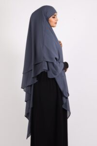 Mallika Double Layer Georgette Princess Khimar – Blue Grey