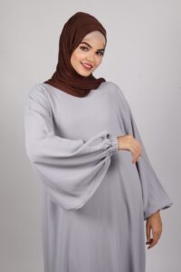 The Elyssa Abaya Set is a testament to refined minimalism in modest wear. Crafted from a new-age fabric called Jazz, which is soft to touch, has a crumpled effect and a cotton-like finish, not only adds texture but also ensures superior comfort in any weather. The enchanting balloon sleeves, adding an ethereal charm to the ensemble. Their loose and airy fit of the abaya not only enhances the modesty of the garment but also creates a mesmerizing drape that captivates with every movement.