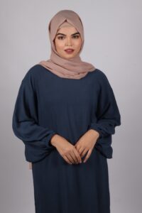 Elyssa Premium Crinkled Cotton Jazz Abaya Set with complimentary Khimar – Denim