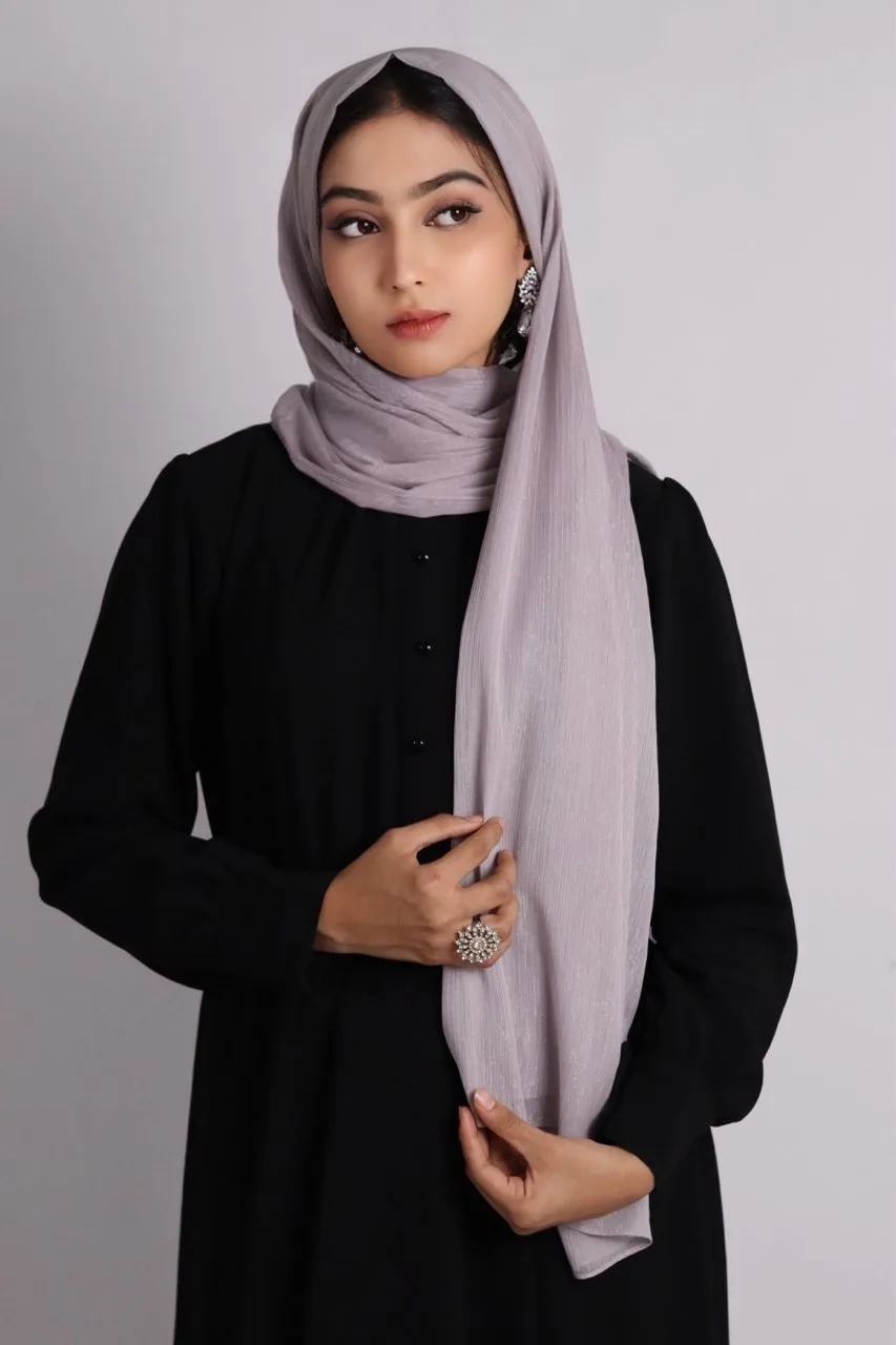 Shine bright like a diamond – with our all-new exclusive shimmer chiffon hijab collection! Every hijab is crafted out of light chiffon fabric imbued with silver shimmer threads, to give it a touch of glam. The subtle hint of shimmer gives it a classy sheen and makes it perfect for wedding wear, or special occasions. Ditch the drab hijabs, and choose something extraordinary, that makes you feel special in every right, with our Shimmer Chiffon hijabs. Light, airy, and shimmery, it’s got all the ingredients for a masterpiece!
