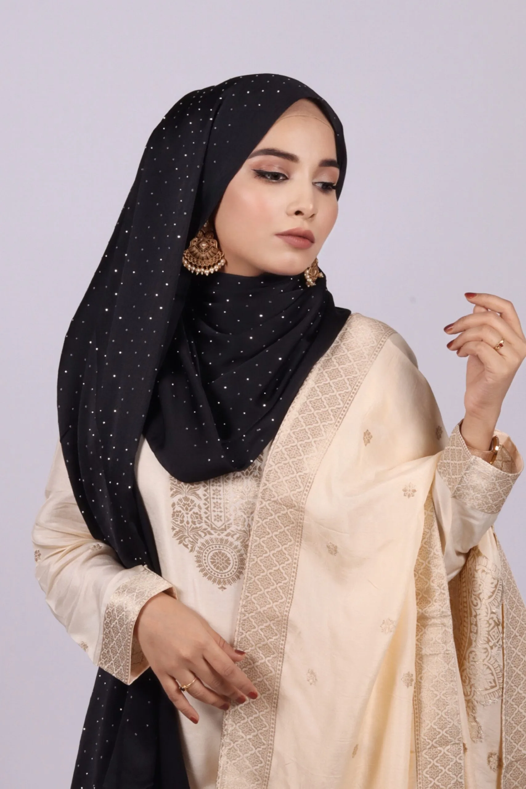 The ultimate rhinestone silk scarf is here! The CC Rhinestone Silk hijab is the first-of-its-kind crafted from our special Turkish silk fabric that offers compete opacity, slight stretch and a silky-smooth ultra-luxurious experience, bedecked with sparkling rhinestones all over the scarf. Offering all-day comfort and convenience, this premium masterpiece will be your go-to hijab reserved for those days when you’re looking to add some glamour into your outfit.