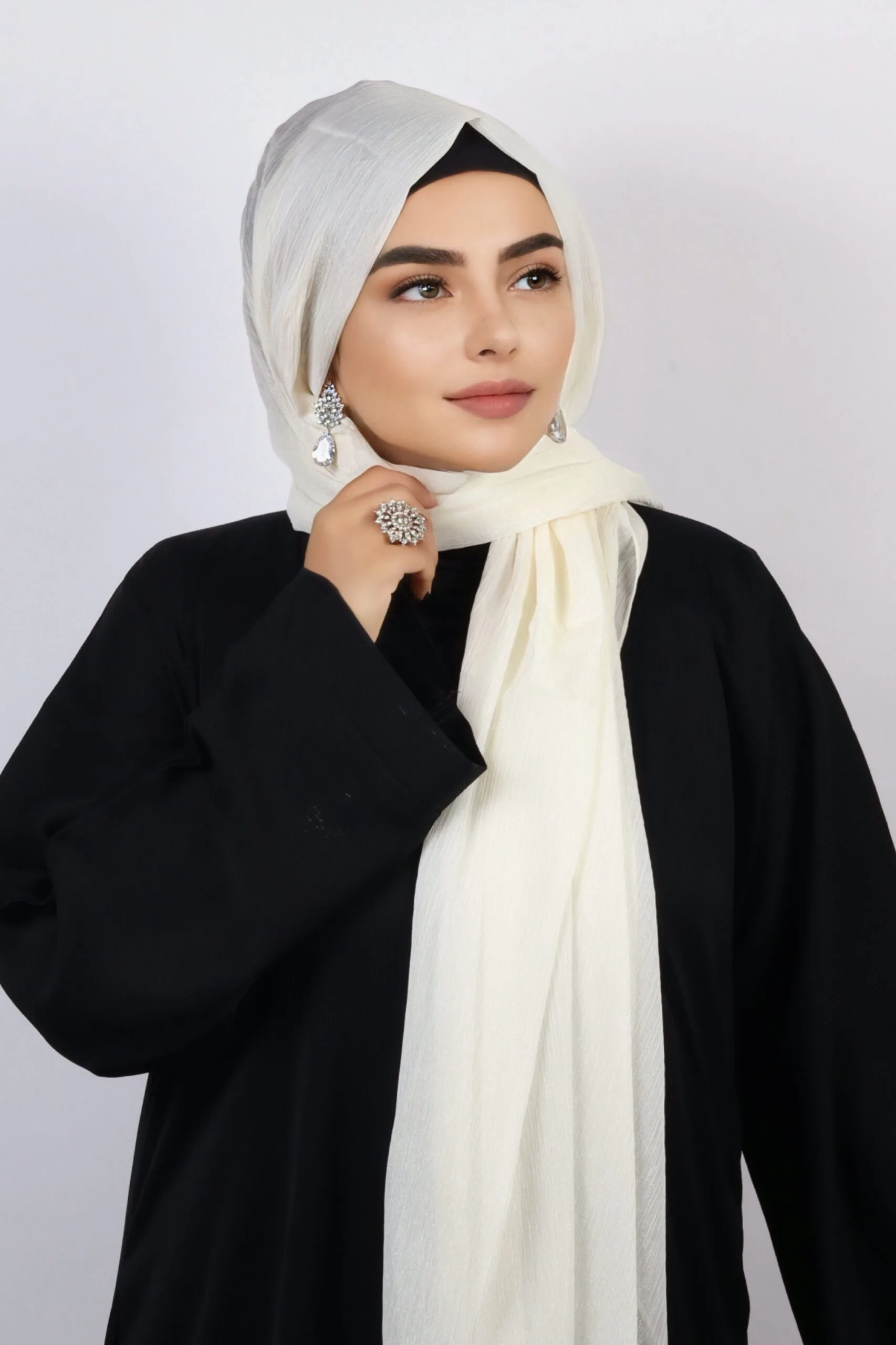 Shine bright like a diamond – with our all-new exclusive shimmer chiffon hijab collection! Every hijab is crafted out of light chiffon fabric imbued with silver shimmer threads, to give it a touch of glam. The subtle hint of shimmer gives it a classy sheen and makes it perfect for wedding wear, or special occasions. Ditch the drab hijabs, and choose something extraordinary, that makes you feel special in every right, with our Shimmer Chiffon hijabs. Light, airy, and shimmery, it’s got all the ingredients for a masterpiece!