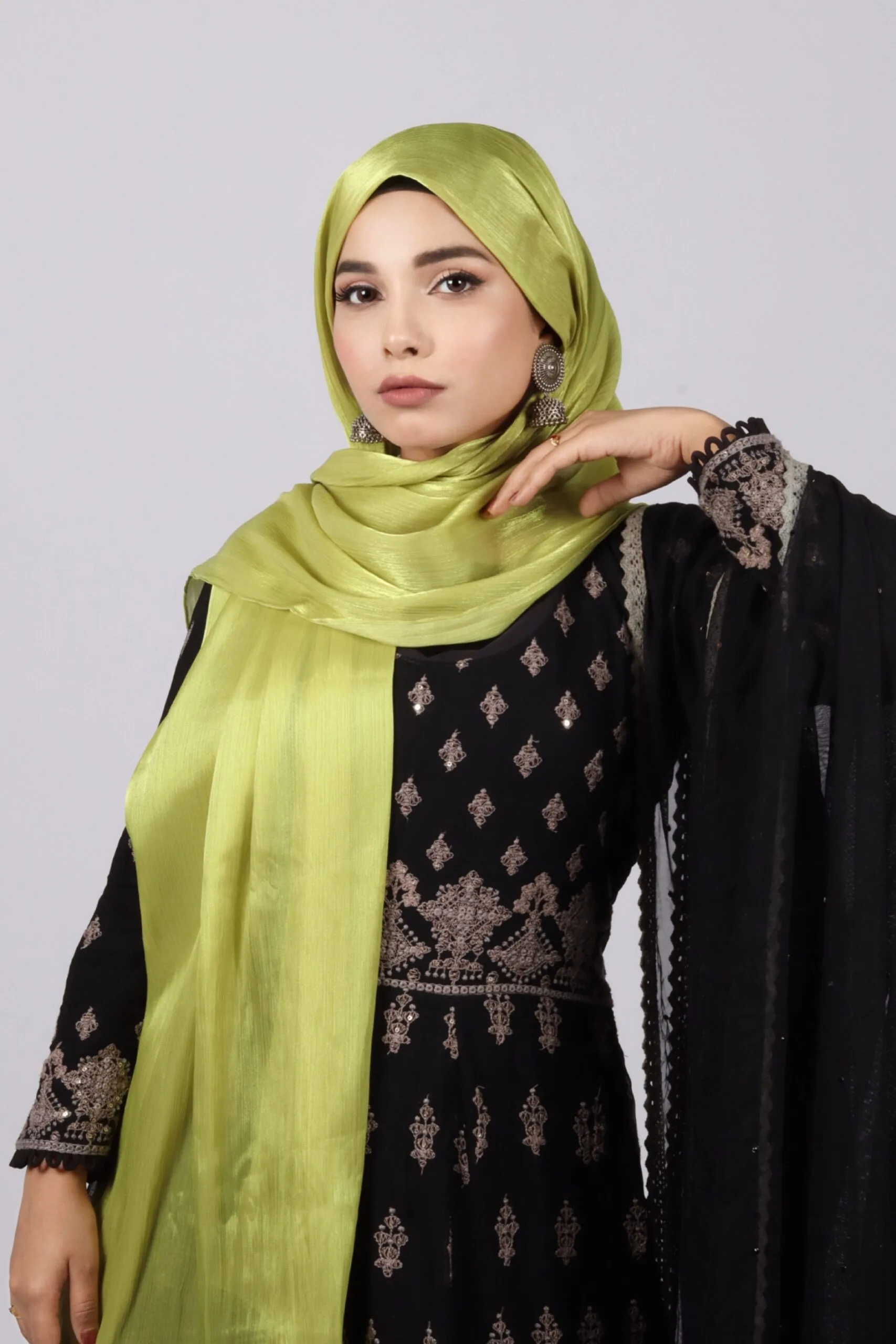 The all-time viral trending organza shimmer fabric now comes in an elegant hijab form! Cloak Couture’s Organza Shimmer hijabs captivate with their refined glamour and timeless charm. Featuring a super lightweight, rich, and breathable organza material infused with a touch of shimmer, this collection lends comfort throughout the day, while its sheer texture adds a touch of ethereal beauty. Elevate your hijab wardrobe with these exquisite organza hijabs that effortlessly blend tradition with modern sophistication.