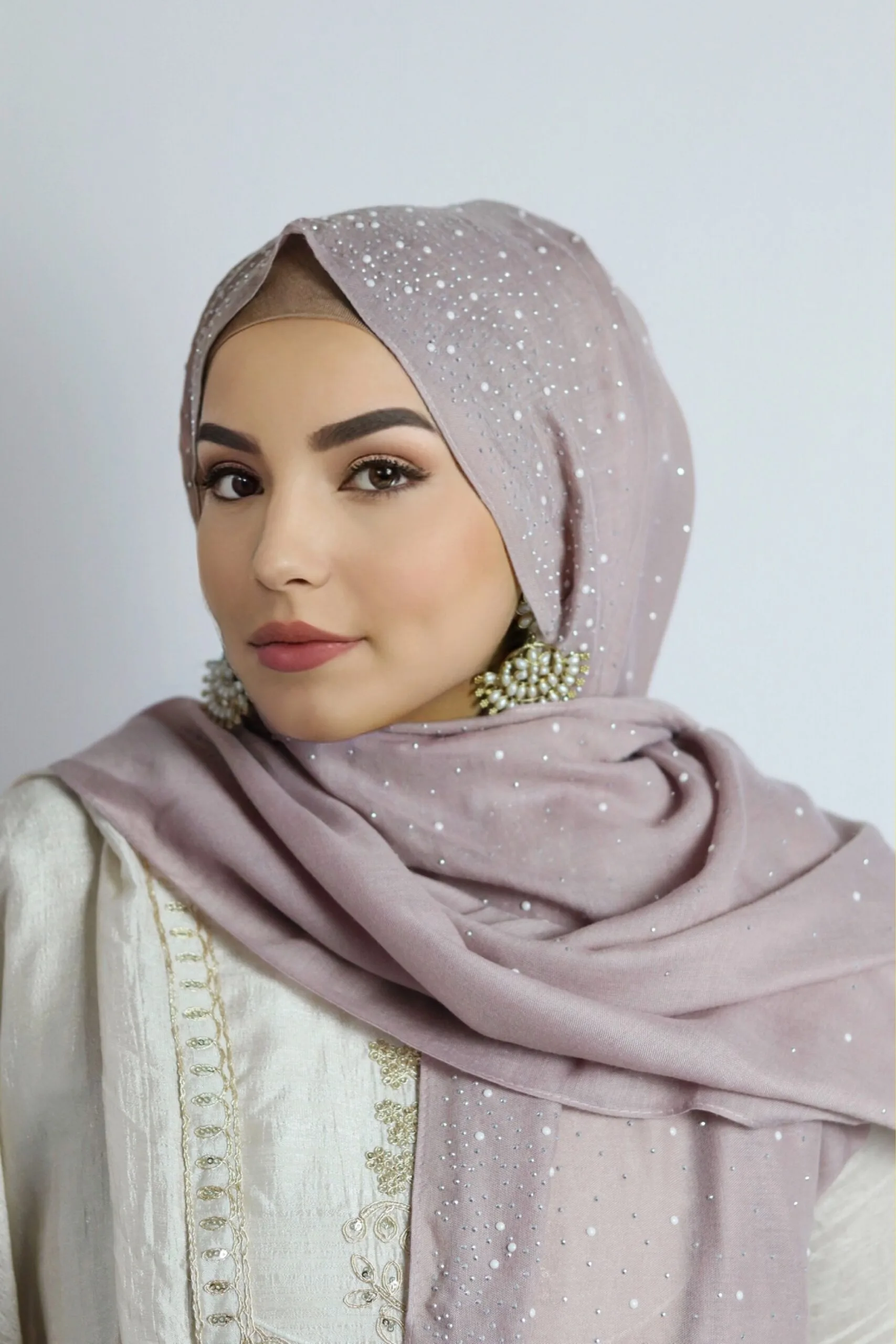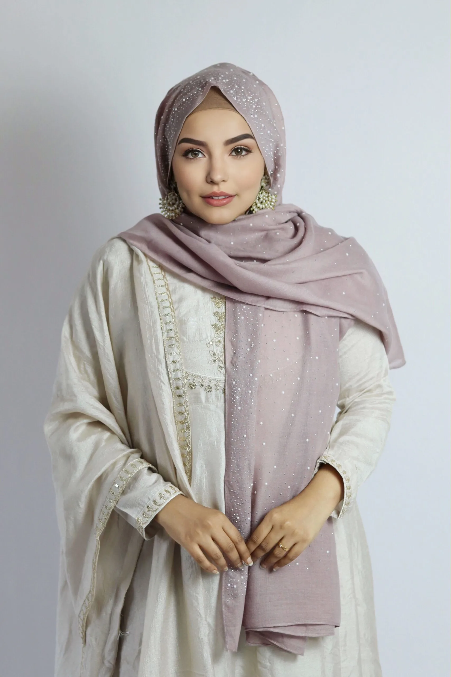 The supreme comfort and versatility of our Classic Cotton Hijabs – now in a new avatar. Expertly crafted from 100% combed cotton, Cotton Stone Drop hijab collection features exquisite half-pearl and stone embellishments across the length and spread throughout the hijab. Embrace the gentle touch of soft fabric against your skin, enveloping you in unmatched comfort, while the studded beads and stones add a touch of sparkle to your attire. These cotton party hijabs provide ample coverage, making them ideal for various styling preferences and a touch of glam, offering the sophistication required for any special occasion.