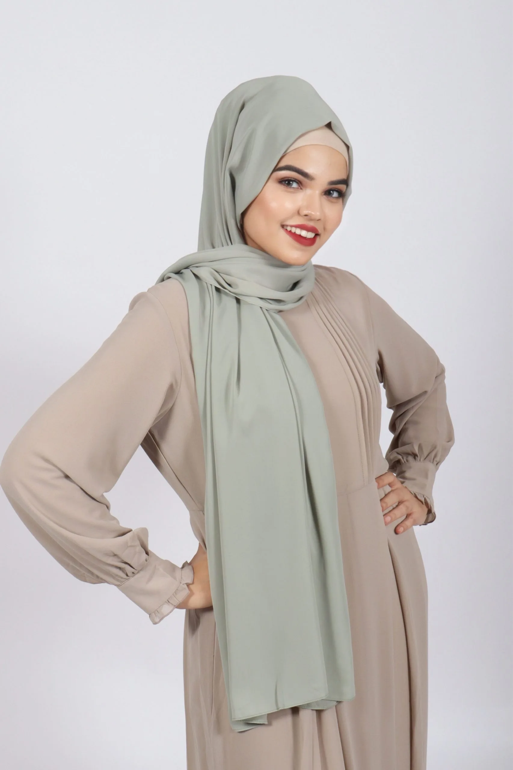 The regality and versatility of premium Korean chiffon fabric, now comes as your next fave hijab. The Korean Chiffon hijab collection is the symphony between the best of silk and chiffon fabrics. The premium quality Korean chiffon blend gives it a subtle sheen, while imparting flow and a beautiful drape that's unlike any other. Super soft, smooth, rich, and ultra-luxurious, you need to feel it to  believe it! Â
