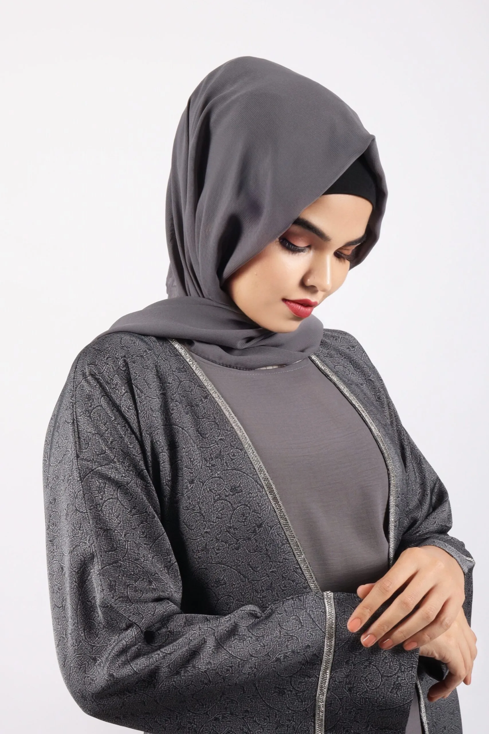 Includes: 1 outer abaya, 1 inner dress, 1 matching scarf, 1 belt
