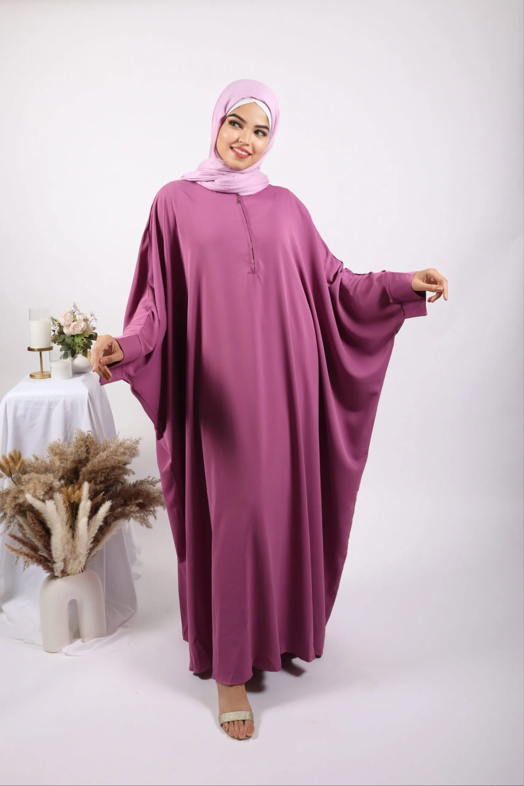 A widely-popular style known for its airy, free-flowing and super comfy nature, the kaftan gets a modest twist like never before! The Parisa Modest Wear Kaftan Abaya in a beautiful pink-purple color is the perfect melange of style and sophistication. Crafted out of first-rate Korean Nida fabric, this kaftan is finished to perfection with velcro fastened cuff sleeves, and a neat zipper neckline, that give it a regal look - and makes it great for easy wear and prayers!